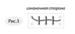 Этим швом исполняются отдельные детали для придания вышивке большей выразительности. На схеме обозначается тонкими линиями. Выполняется методом «назад иголка». Игла выходит на лицевую сторону в точке 1 и уходит на изнаночную в точке 2. Затем выходит с изнанки в точке 3 и возвращается по лицевой стороне в точку 1 и т. д. (Рис.5). Длинные стежки лучше разбивать на небольшие, длиной 1-1,5 см, при этом четко следуя рисунку.