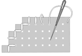 Рабочая нить должна быть всегда с одной стороны. Менять направление нити во время работы нельзя, иначе нарушится структура шва. Все стежки должны быть одной величины.
